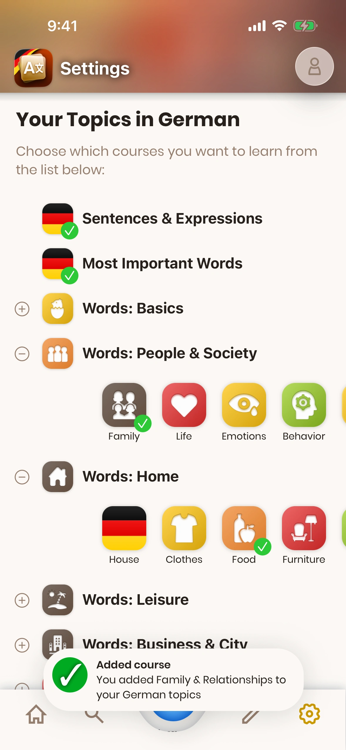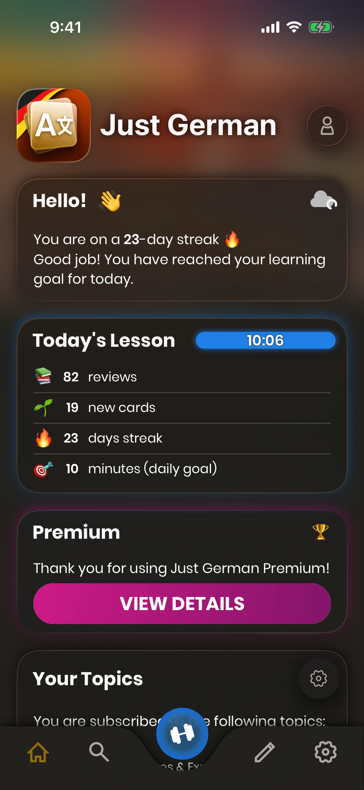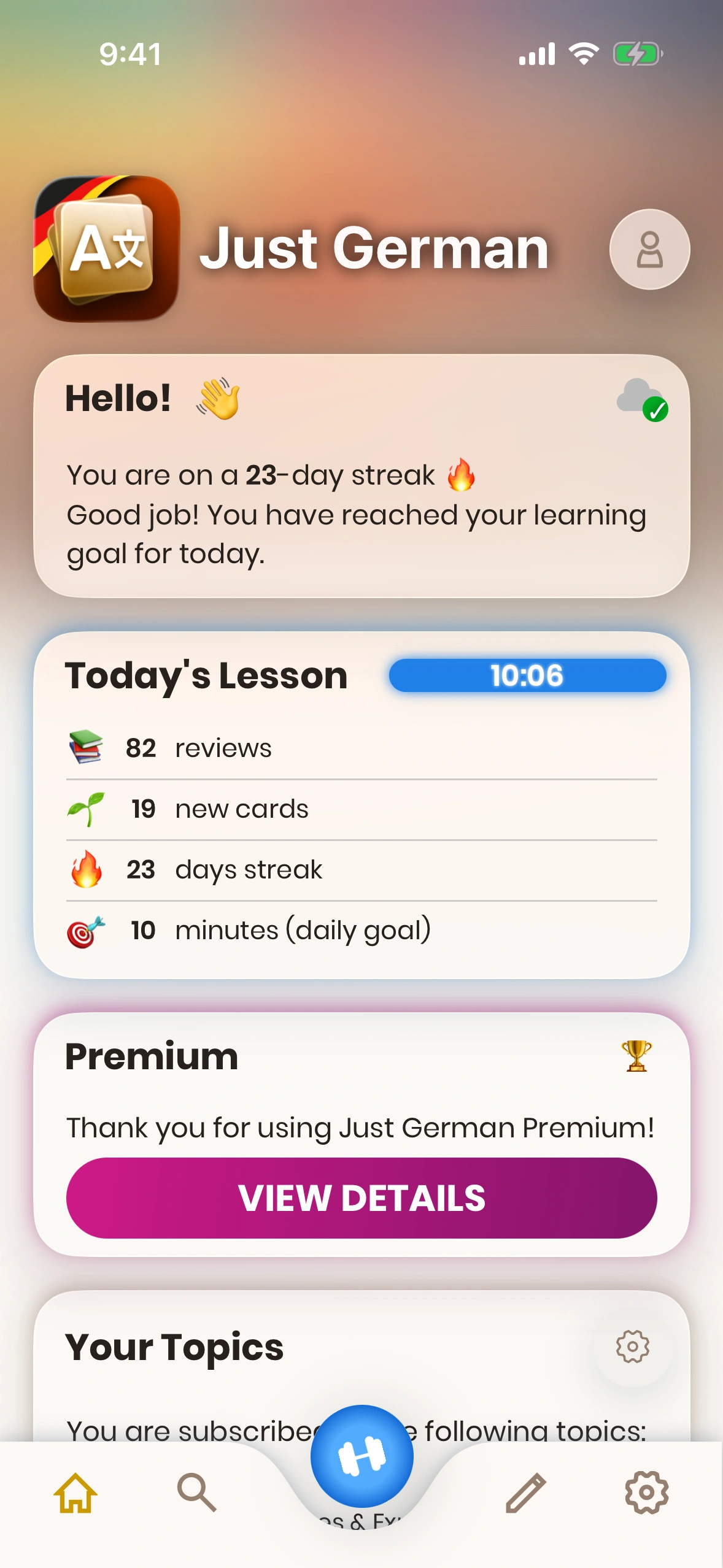 Games and Owls are nice, but if you prefer to make progress, Just German is the app for you.
