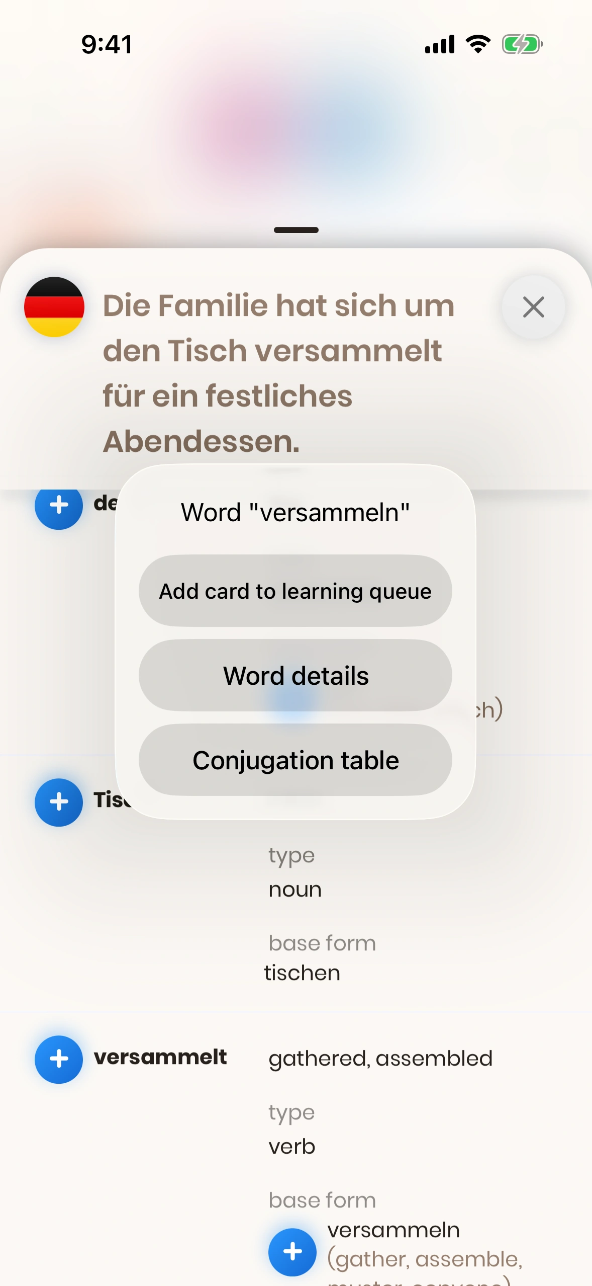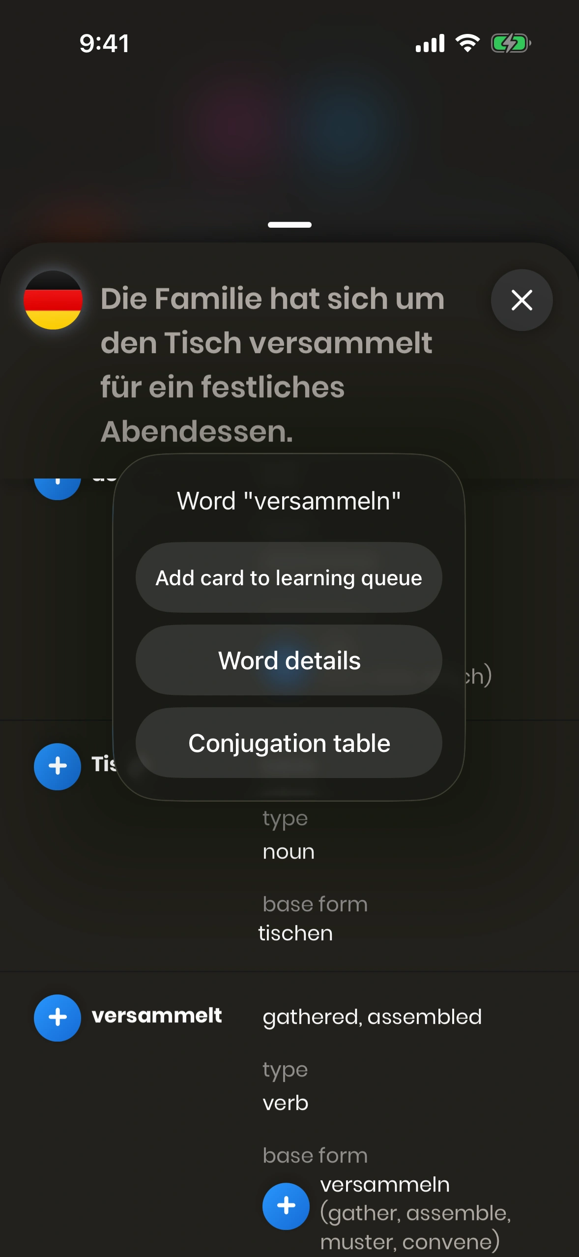 There, press a (+) button beside a word to add it to your learning queue.