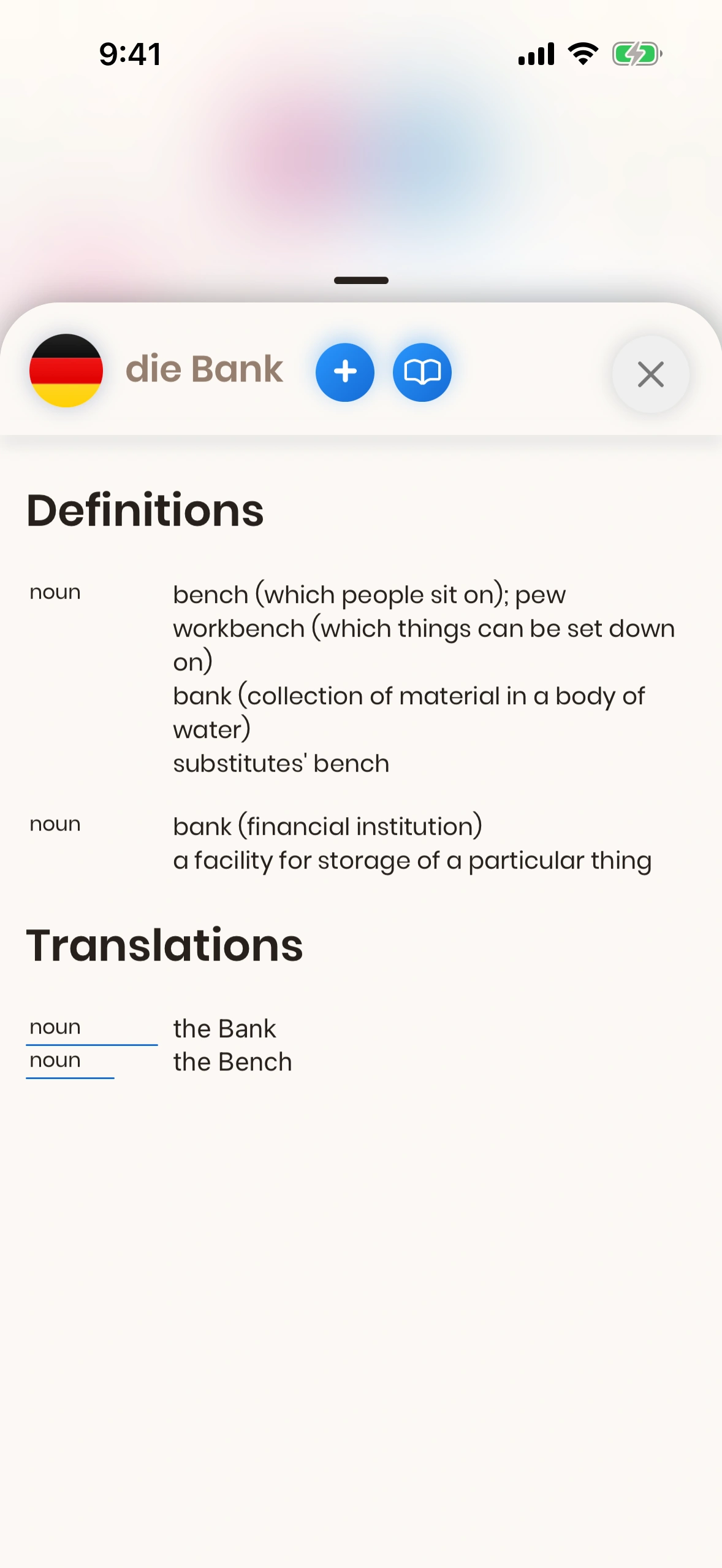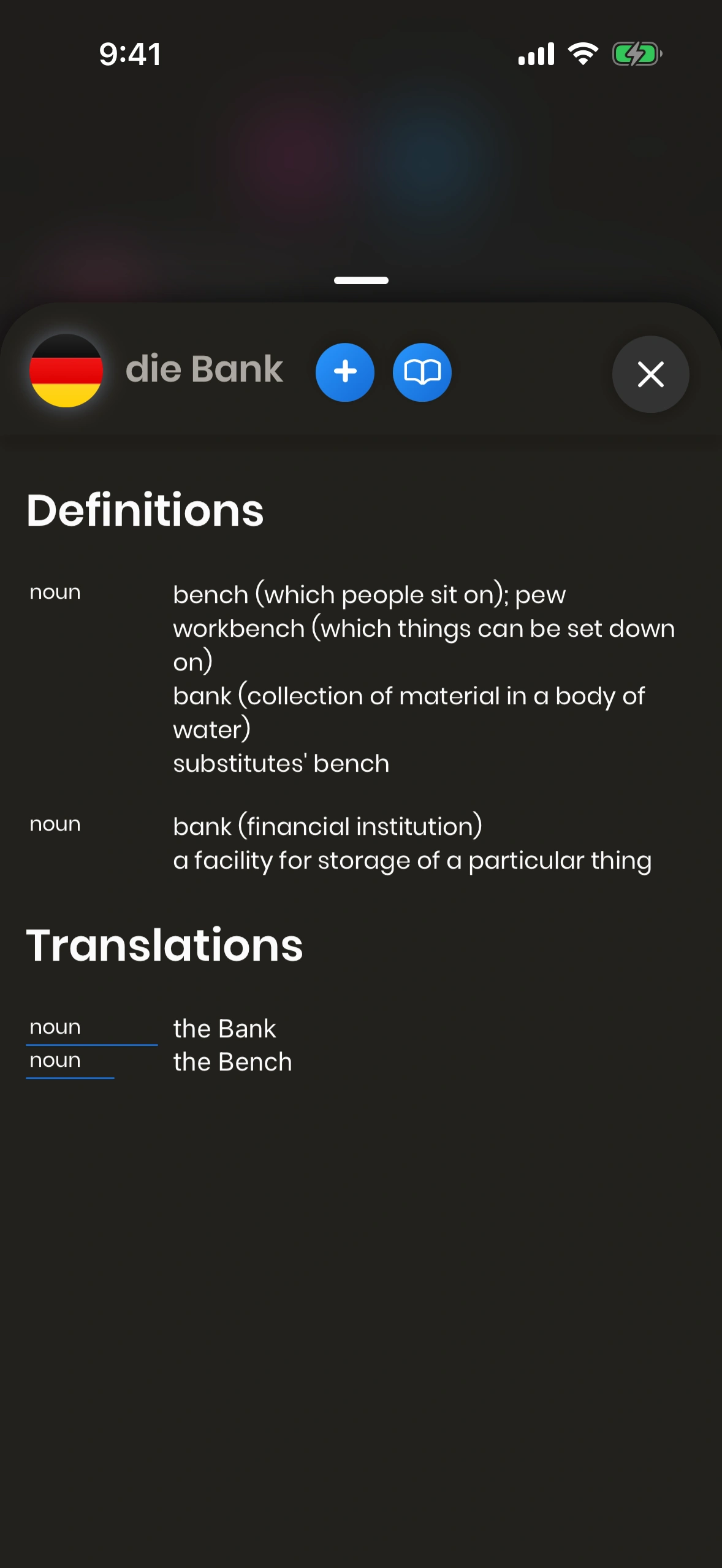 If the Add Button appears in other areas of the app, it might also offer the option "Word Details", which will show you the Word Modal (see above).