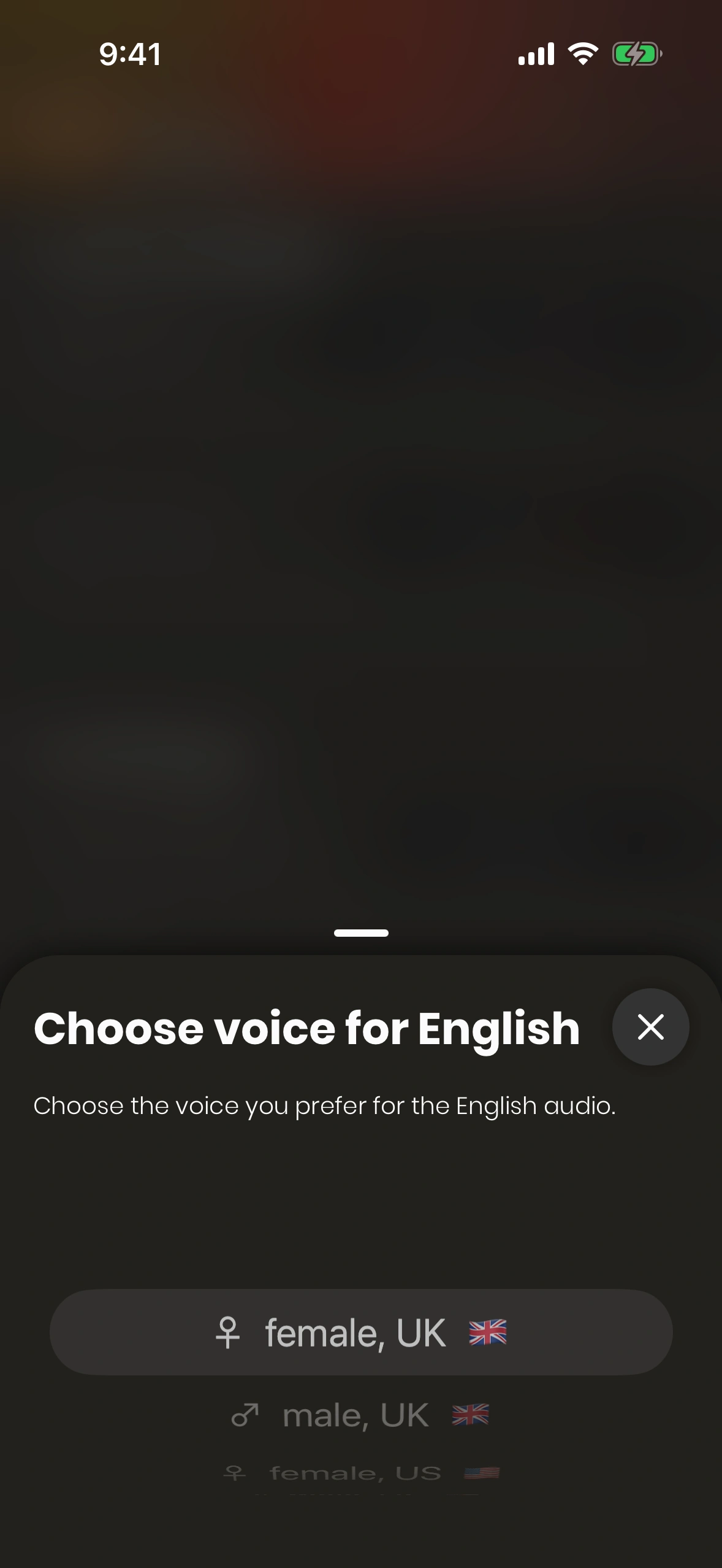 All languages are available in a female and a male voice. In addition, English can be chosen in a British or an American accent.