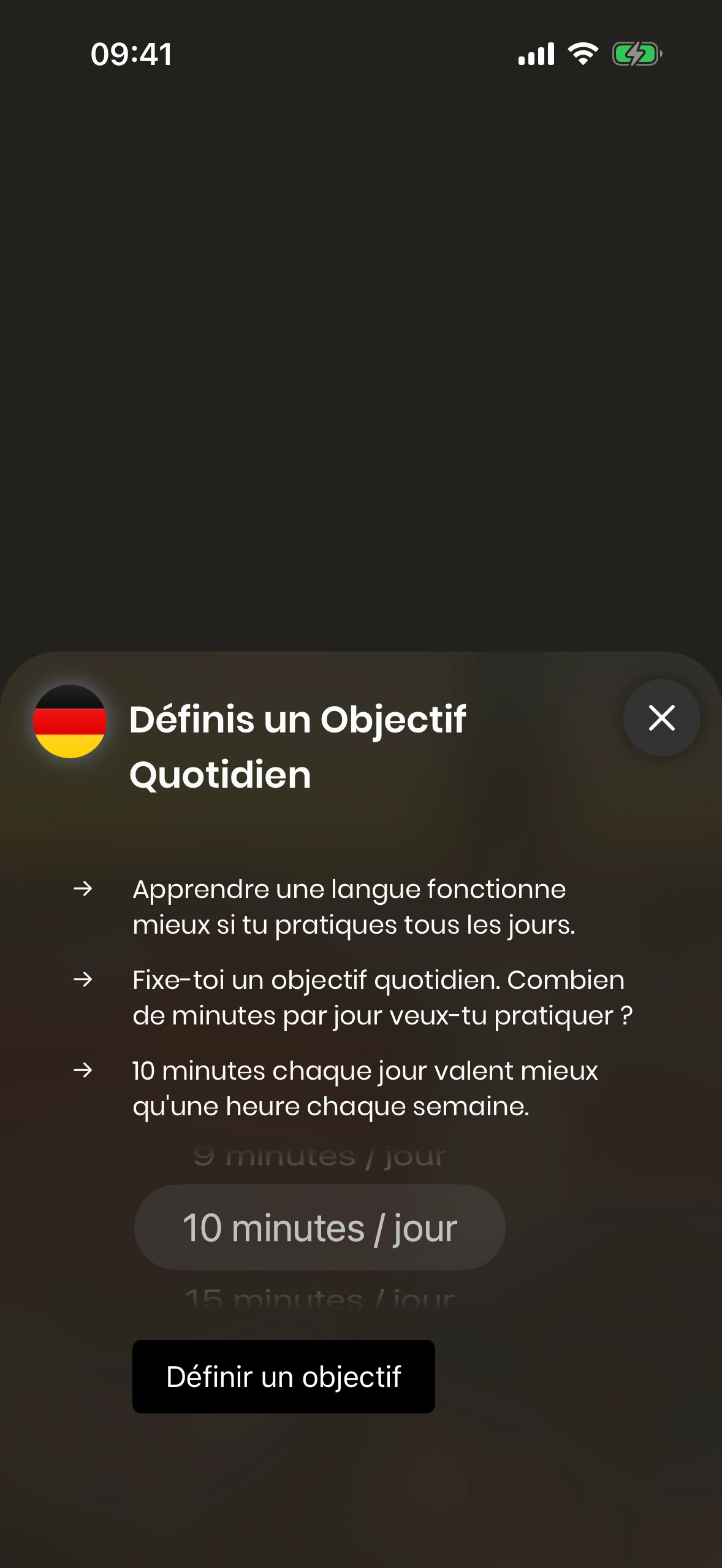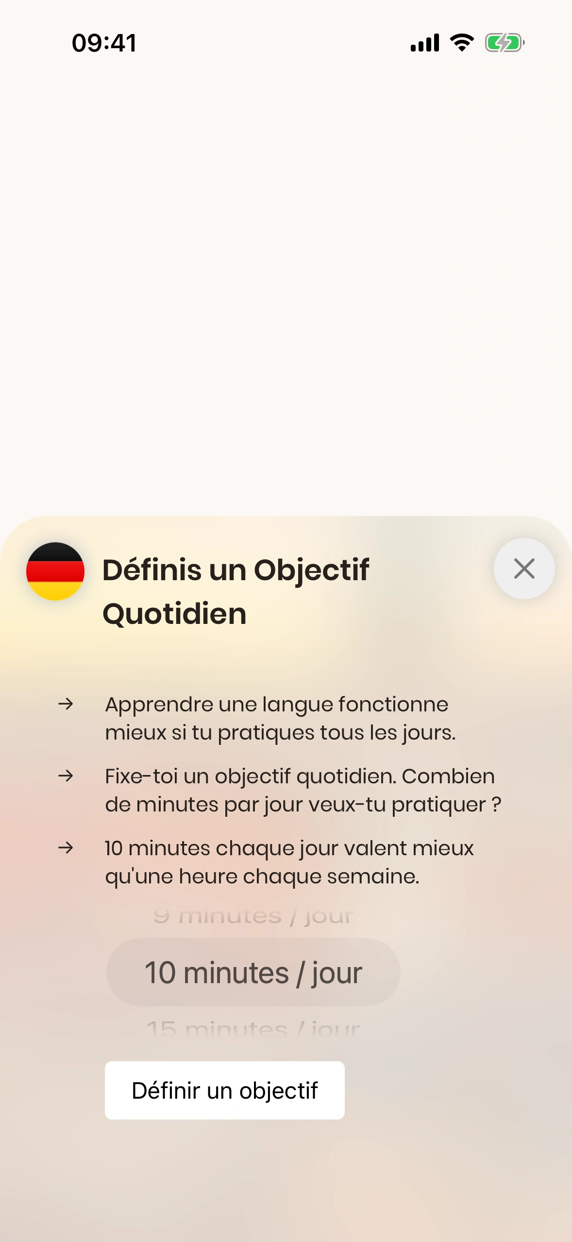 Si tu as envie de continuer après avoir atteint ton objectif quotidien, tu peux bien sûr continuer aussi longtemps que tu veux. Beaucoup se fixent 3, 5 ou 10 minutes, mais passent parfois (par exemple le dimanche) jusqu'à une heure dans l'application pour approfondir vraiment.