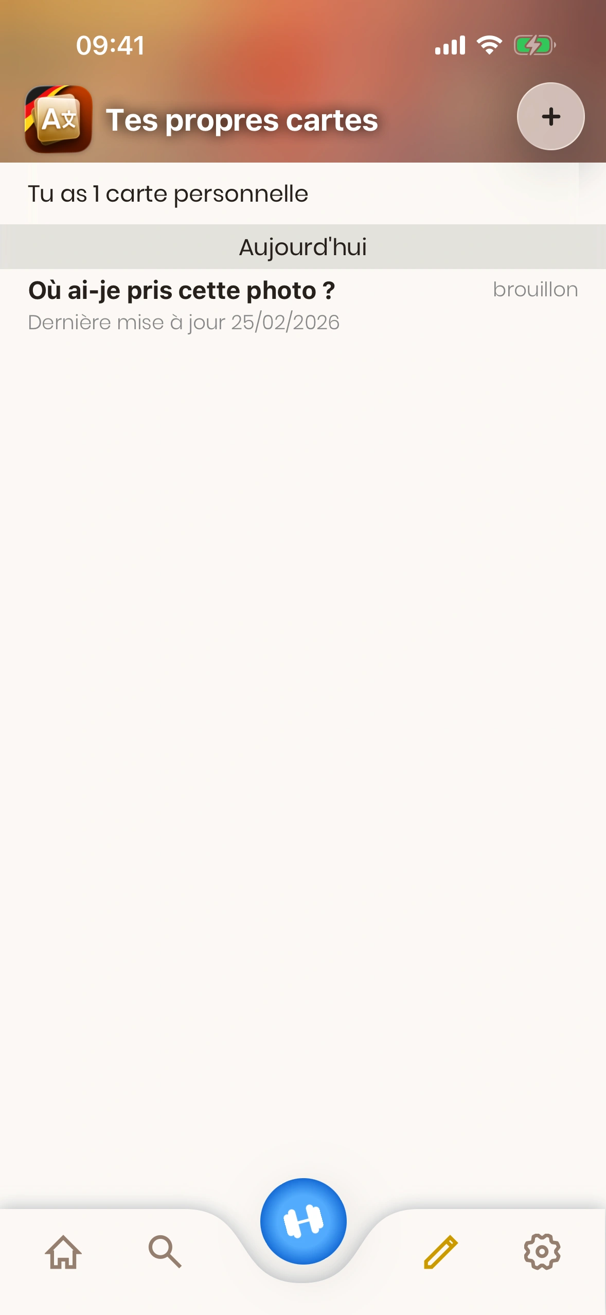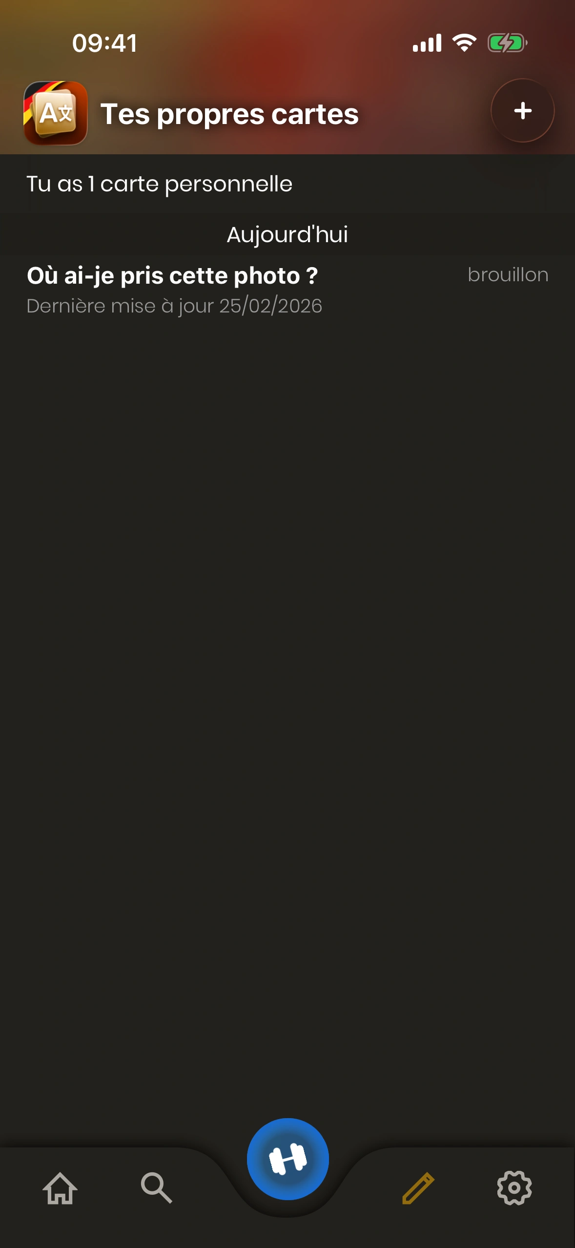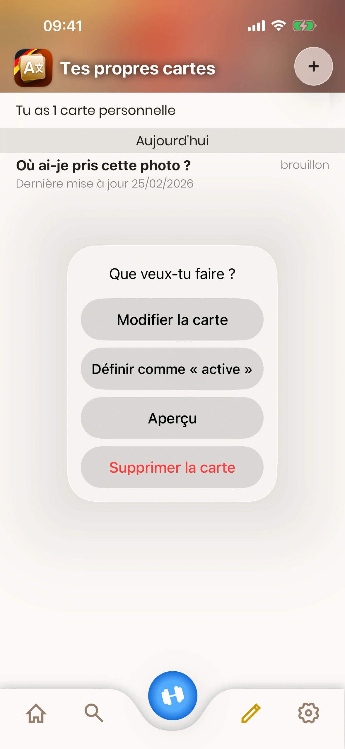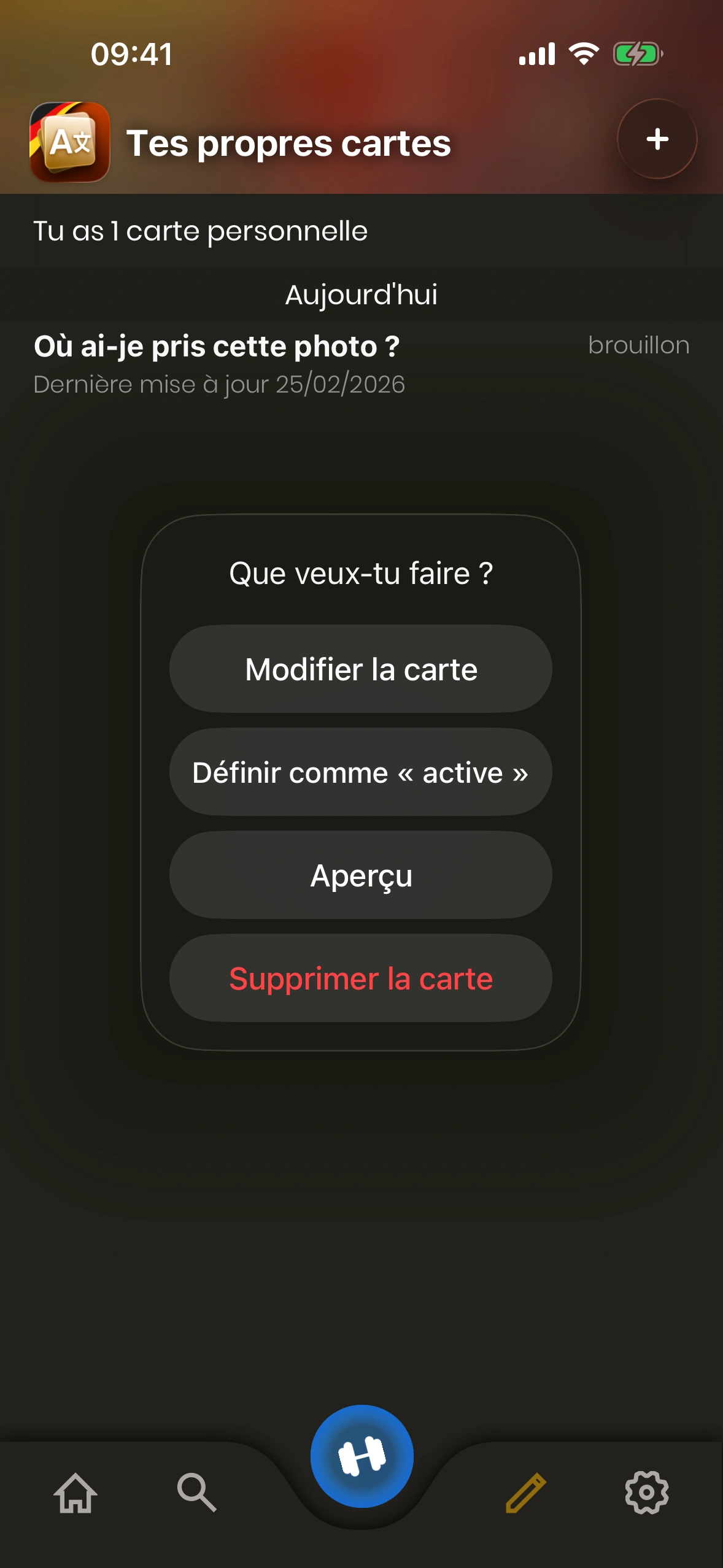 - Liste de cartes : Dans cette liste, chaque entrée est l'une de tes cartes personnelles. Appuie sur une carte pour la modifier ou la supprimer.