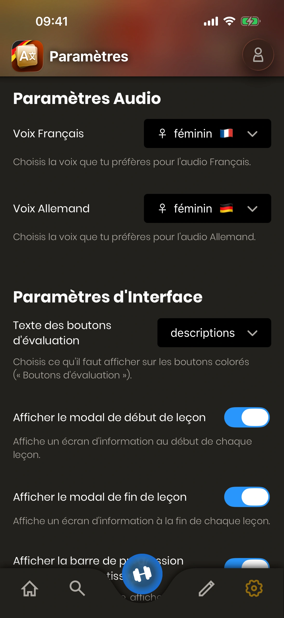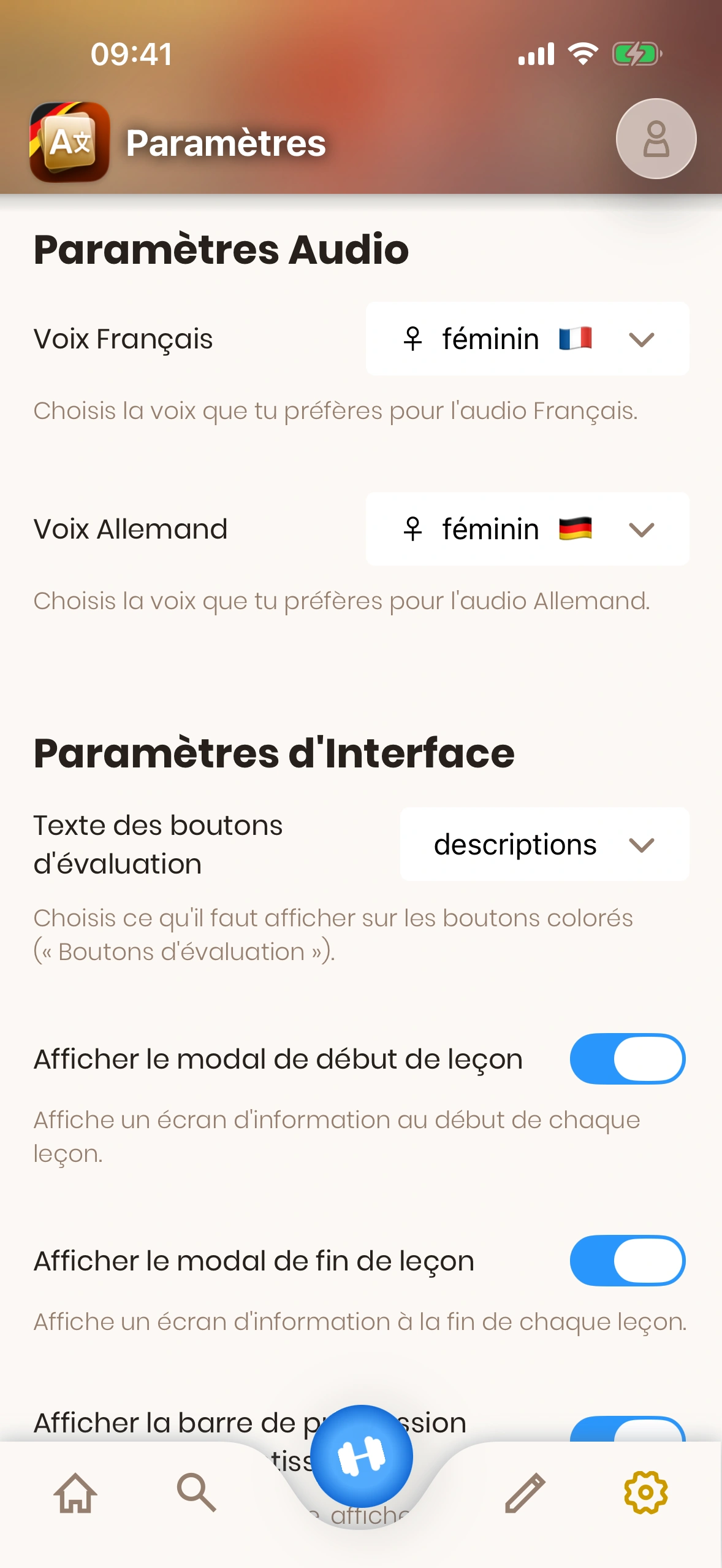 Paramètres de voix