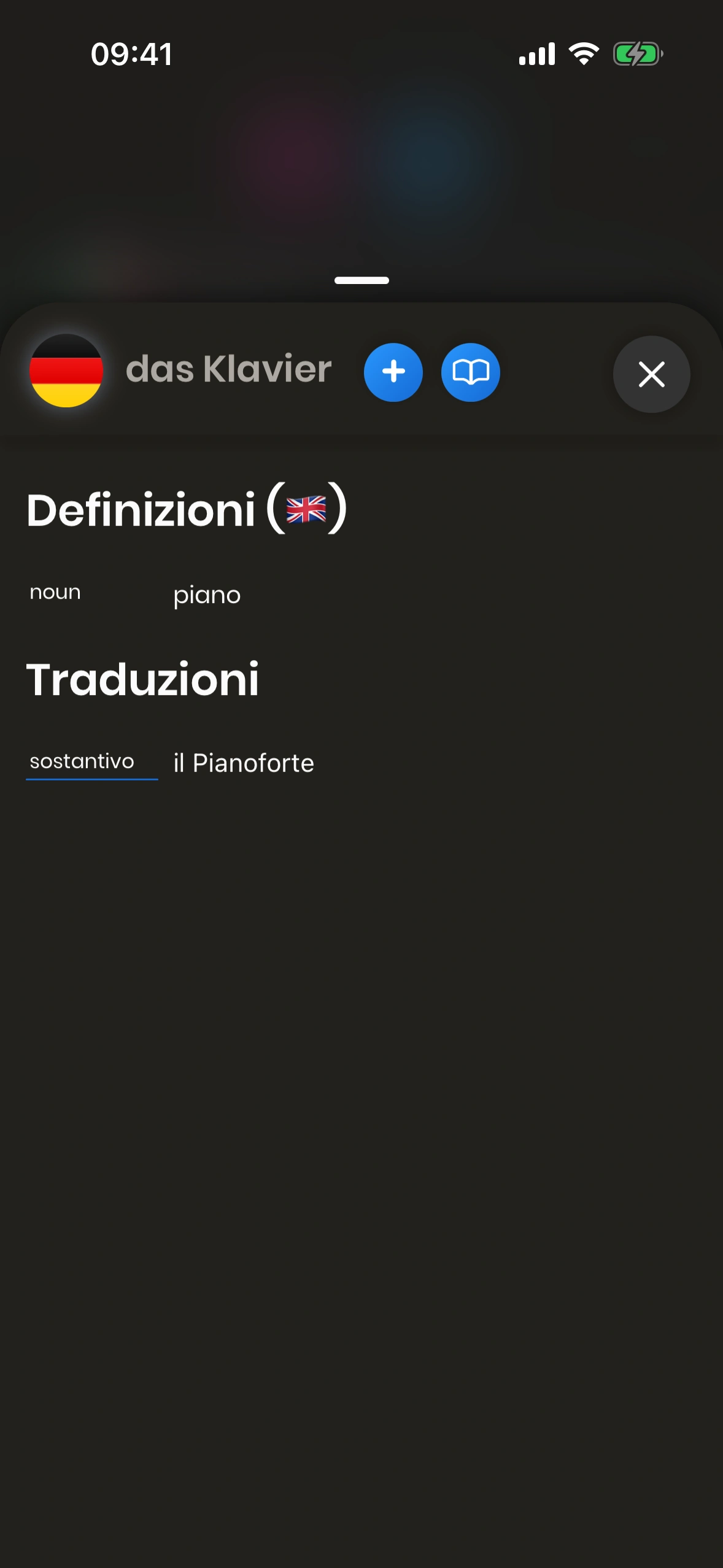 Il modale completo della parola è disponibile per le parole Tedesco. Il modale della parola per le parole Italiano ha contenuti limitati.